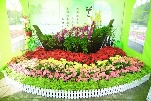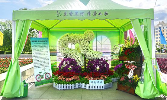 來到花卉展現(xiàn)場,走進(jìn)用四色絹花搭建而成的迎賓花門,首先映入眼簾的是一座高為5.3米的五色草盛世花籃,花籃中滿是盛開的鮮花,寓意著黑河人民在市委、市政府的帶領(lǐng)下,生活盛滿著希望、盛滿著喜悅、盛滿著美好、盛滿著幸福?!盎ê1庵邸敝黝}展區(qū)以船為展示依托,寓意著黑河這座生態(tài)濱水城市正乘風(fēng)破浪,駛向幸福港灣。自古以來,中華民族就喜愛素淡、雅致、潔凈的風(fēng)格,推崇忠貞、廉潔、質(zhì)樸、堅(jiān)韌的情操,而蘭花正是這種風(fēng)格和情操的和諧統(tǒng)一,“蘭風(fēng)雅韻”主題展區(qū)繁體“蘭”字由500株花卉編插而成,寓意市委、市政府注重城市精神塑造,積淀城市文化內(nèi)涵,為各項(xiàng)事業(yè)蓬勃發(fā)展注入強(qiáng)大動(dòng)力?!磅r花中國”主題展區(qū)是本屆花卉展的主展區(qū),花卉造型置于中國龍雕塑臺(tái)階下,寓意中國東方巨龍的騰飛,更祝福偉大祖國繁榮昌盛?!熬G色單車”主題展區(qū)以我市便民公共自行車為載體,倡導(dǎo)綠色環(huán)保、生態(tài)宜居的城市理念,是我市民生項(xiàng)目的園藝性標(biāo)志。