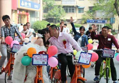 之后,邵寧和邵南便開始忙活借車事宜。邵寧告訴記者,他們這樣做得到了雙方父母的支持?!坝H朋好友一起騎著公共自行車接媳婦,感覺很拉風(fēng)。”