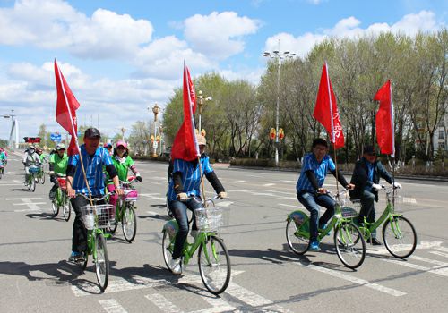5月16日,由黑河市委統(tǒng)戰(zhàn)部、九三學(xué)社黑河市委聯(lián)合舉辦,黑龍江省騎游協(xié)會(huì)黑河分會(huì)承辦的“黑河中俄邊境騎游大會(huì)”暨全民健身自行車騎游活動(dòng)在黑河市區(qū)世紀(jì)廣場拉開帷幕。本次活動(dòng)使用的公共自行車堪稱活動(dòng)的一大亮點(diǎn),整齊劃一的公共自行車從馬路上飛馳而過,在藍(lán)天白云的映襯下顯得格外靚麗,風(fēng)采無限。