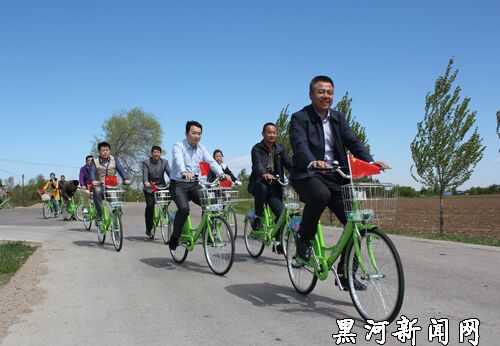 5月23日上午,到黑河參加運(yùn)營(yíng)會(huì)議的常州永安公共自行車運(yùn)營(yíng)有限公司各分公司的負(fù)責(zé)人興致勃勃,在運(yùn)營(yíng)公司負(fù)責(zé)人的帶領(lǐng)下,開展騎行“小綠”到璦琿活動(dòng)。30余公里的長(zhǎng)途路程,20名騎行者并沒有感覺到勞累,“黑河的天藍(lán)樹綠水美,空氣清新,我們好久沒體驗(yàn)到這種生態(tài)環(huán)境了?!贝蠹疫咈T邊拍,陶醉在一路美景中。