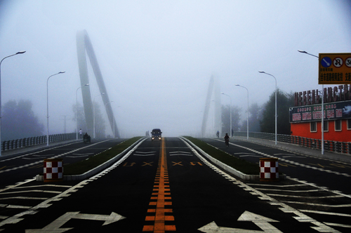 霧中黑河大島國貿(mào)城橋
