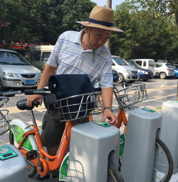 秦先生在“大家庭”行政部工作,每天都在市內(nèi)大街小巷穿梭,查看門店經(jīng)營情況,每天借車的頻率在5次以上。秦先生坦言自己家中有汽車、摩托車、電動車,但就是喜歡騎公共自行車,因為“確實很方便”。