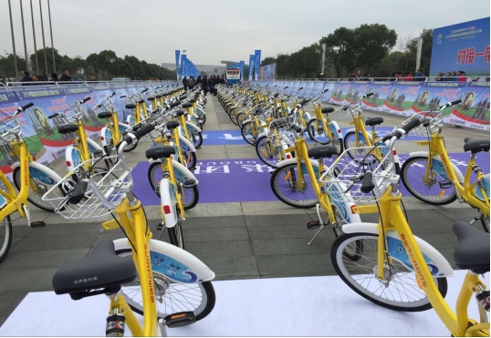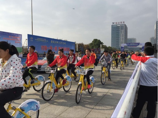 比賽正式開始前,鹽城公共自行車管理中心提供了300多輛城市公共自行車,在工作人員的努力下排放整齊,為賽前的綠色騎行做好準備。