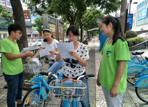 通過三天的調(diào)查,志愿者們對(duì)問卷進(jìn)行了分類整理統(tǒng)計(jì),將市民提出的意見建議以及問卷中每個(gè)問題選項(xiàng)所占的比例進(jìn)行了整合分析總結(jié)。接受調(diào)查的市民有百分之六十為18-30歲的青年。絕大部分人在短途出行時(shí),會(huì)選擇公共自行車出行,他們認(rèn)為城市公共自行車便捷、靈活。大多數(shù)市民會(huì)在購(gòu)物及上下班時(shí)使用公共自行車。與此同時(shí),一些沒使用過公共自行車的市民也表示對(duì)公共自行車有濃厚的興趣,在調(diào)查問卷過程中向志愿者們進(jìn)行詢問。