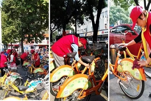 江蘇省:宜興志愿者維護(hù)公共自行車