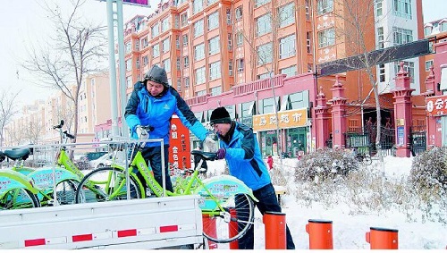 由于氣溫急劇下降,降溫降雪導(dǎo)致路面結(jié)冰,為確保使用公共自行車的市民人身安全,市公共自行車管理中心于11月14日停止運(yùn)營市區(qū)公共自行車,開始陸續(xù)回收市區(qū)90處站點(diǎn)的2530輛公共自行車,工作人員將進(jìn)行檢修和維護(hù),以便明年春季繼續(xù)投入使用。據(jù)統(tǒng)計,公共自行車自2012年投入使用以來,市民共借還公共自行車輛達(dá)3160萬次,其中今年借還700萬次。