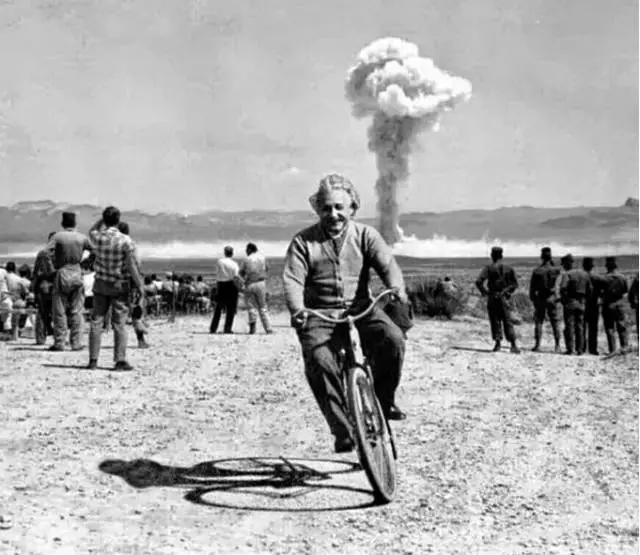 核彈試驗(yàn)時(shí),愛(ài)因斯坦騎著自行車。
