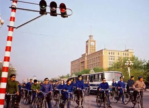 1981年,北京。北京市民騎著黑色或灰色的自行車趕去上班。當(dāng)時(shí)每三個(gè)人中,只有一人能幸運(yùn)地?fù)碛幸惠v自行車。