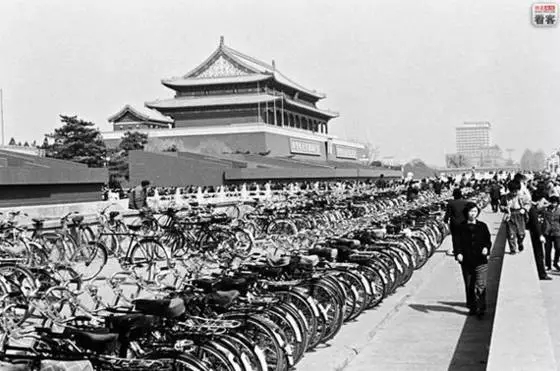 1984年,北京天安門廣場(chǎng)停車場(chǎng)。80年代中國(guó)“自行車王國(guó)”稱號(hào)聞名世界。在2002年當(dāng)喬治.w.布什總統(tǒng)訪華時(shí),他被獲贈(zèng)一輛自行車。
