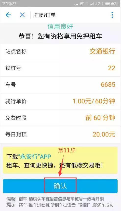 和自行車對(duì)照一下,沒有錯(cuò)的話,就可以點(diǎn)擊“確定”了。