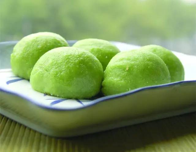 青團(tuán),又叫艾團(tuán),是一種用草頭汁做成的綠色糕團(tuán)。青團(tuán)碧青油綠,糯韌綿軟,甘甜細(xì)膩,清香爽口。青團(tuán)是流行于江浙一帶的清明節(jié)節(jié)日食品,用青艾的汁與糯米粉一起調(diào)和,將豆沙餡、芝麻餡等餡料包入,做成一個(gè)個(gè)如小孩子拳頭大小的綠色的團(tuán)子。家長帶著孩子出外踏青時(shí),還可以帶上一些青團(tuán)作為小吃。