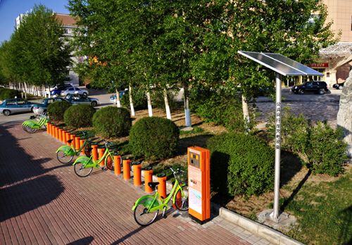 黑河市公共自行車倡導(dǎo)“節(jié)能減排、低碳出行、綠色環(huán)保、方便群眾”的理念,提升邊境口岸旅游文化城新形象,黑河市在我省率先開啟公共自行車便民服務(wù)項(xiàng)目。 黑河市公共自行車系統(tǒng)采用了高新太陽能節(jié)能技術(shù),在真正意義上實(shí)現(xiàn)了“節(jié)能減排、低碳出行”。目前,在大島國(guó)貿(mào)城、商貿(mào)大酒店及龍濱公園這三個(gè)點(diǎn)安裝了太陽能充電設(shè)備。