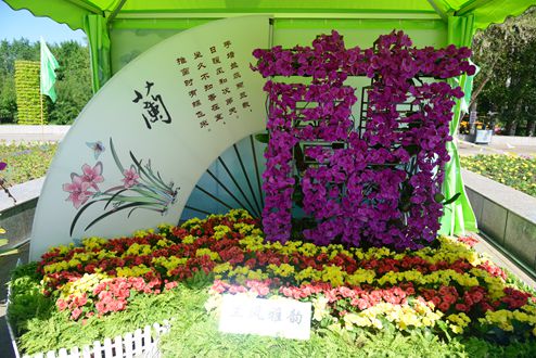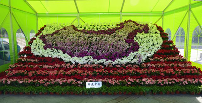 來(lái)到花卉展現(xiàn)場(chǎng),走進(jìn)用四色絹花搭建而成的迎賓花門(mén),首先映入眼簾的是一座高為5.3米的五色草盛世花籃,花籃中滿(mǎn)是盛開(kāi)的鮮花,寓意著黑河人民在市委、市政府的帶領(lǐng)下,生活盛滿(mǎn)著希望、盛滿(mǎn)著喜悅、盛滿(mǎn)著美好、盛滿(mǎn)著幸福?!盎ê1庵邸敝黝}展區(qū)以船為展示依托,寓意著黑河這座生態(tài)濱水城市正乘風(fēng)破浪,駛向幸福港灣。自古以來(lái),中華民族就喜愛(ài)素淡、雅致、潔凈的風(fēng)格,推崇忠貞、廉潔、質(zhì)樸、堅(jiān)韌的情操,而蘭花正是這種風(fēng)格和情操的和諧統(tǒng)一,“蘭風(fēng)雅韻”主題展區(qū)繁體“蘭”字由500株花卉編插而成,寓意市委、市政府注重城市精神塑造,積淀城市文化內(nèi)涵,為各項(xiàng)事業(yè)蓬勃發(fā)展注入強(qiáng)大動(dòng)力?!磅r花中國(guó)”主題展區(qū)是本屆花卉展的主展區(qū),花卉造型置于中國(guó)龍雕塑臺(tái)階下,寓意中國(guó)東方巨龍的騰飛,更祝福偉大祖國(guó)繁榮昌盛?!熬G色單車(chē)”主題展區(qū)以我市便民公共自行車(chē)為載體,倡導(dǎo)綠色環(huán)保、生態(tài)宜居的城市理念,是我市民生項(xiàng)目的園藝性標(biāo)志。