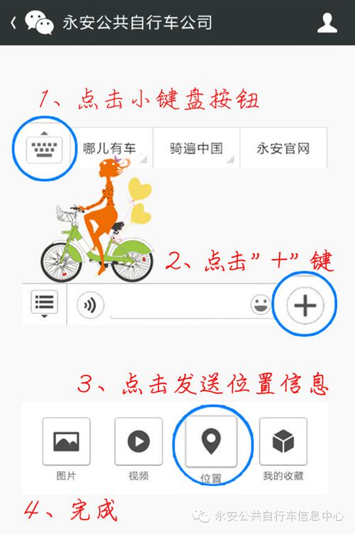 為方便廣大市民更好的使用公共自行車,我司特推出永安公共自行車微信官方服務(wù)號(hào),關(guān)注“永安公共自行車公司”或者“ibike668”,點(diǎn)擊“哪兒有車”,再點(diǎn)“周邊站點(diǎn)”,即能找出您附近所有公共自行車站點(diǎn)。
