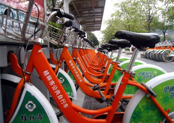 自去年10月1日正式投入使用,如今,公共自行車已經(jīng)成了桂林一道橘色的風(fēng)景線。越來越多的市民喜歡上這種低碳、方便、快捷的交通工具。