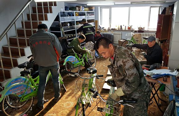 自2015年10月29日黑河公共自行車停止運(yùn)營,收回全部自行車,維修師傅開始進(jìn)行冬季自行車維保工作。