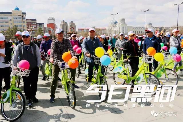 今天10點(diǎn)左右,在黑河世紀(jì)廣場遛彎和附近的居民會發(fā)現(xiàn),世紀(jì)廣場來了一群戴著小白帽騎小綠的人,這是要干嘛?