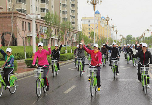 啟動(dòng)儀式上,由黑河市機(jī)關(guān)干部職工群眾100人組成的隊(duì)伍,冒著蒙蒙細(xì)雨,興致勃勃地騎上自行車在市區(qū)進(jìn)行了騎行體驗(yàn)。